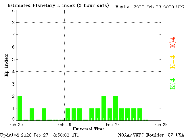 Geomagnetic activity is somewhat unstable, ranging from 1 to 2 of the Kp Index. The solar wind intensity is mostly calm, although it did spike as expected, causing minor geomagnetic disturbances. The next solar wind intensification will be right after a minor drop, likely to hit on the 29th.