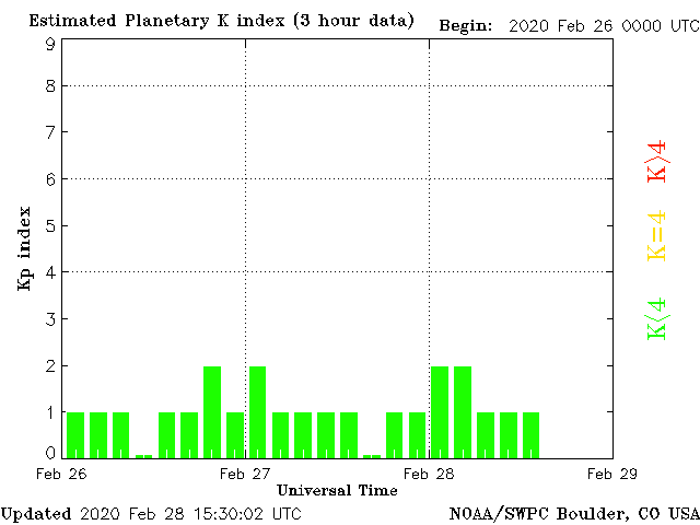Geomagnetic activity is somewhat unstable, ranging from 1 to 2 of the Kp Index. The solar wind intensity increased this morning as expected. However, the geomagnetic shield flipped and a such, the expected field disturbance never occurred. There will likely be low-intensity storms later today and tomorrow.
