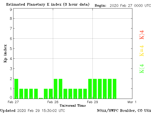 Geomagnetic activity is somewhat unstable, ranging from 1 to 2 of the Kp Index. The solar wind intensity increased again this morning as expected. The geomagnetic field has adjusted well and as such no major geomagnetic storms have resulted. Another rise in solar wind intensity should take place tomorrow at some point.