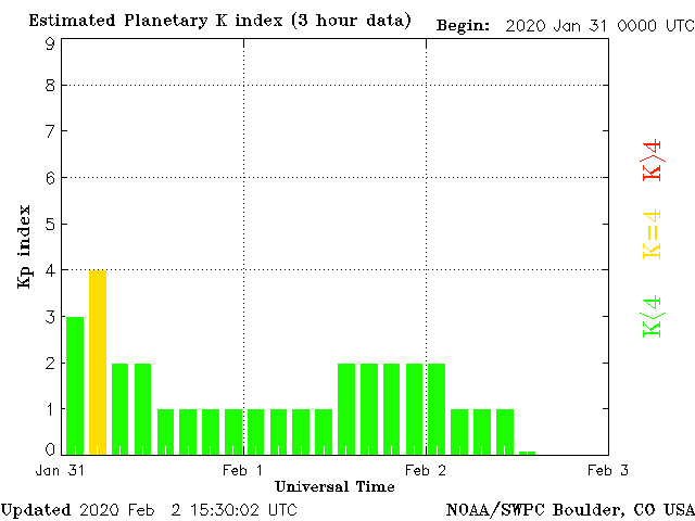 Geomagnetic activity is stabilizing, ranging from 0 to 2 of the Kp Index. The solar wind intensity is still strong by comparison but steady enough such that the geomagnetic field has adjudged well. No major geomagnetic storms are likely for the next 3 days.