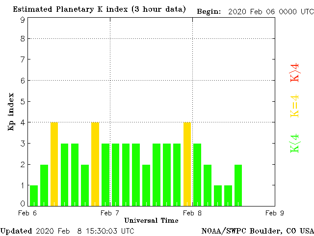Geomagnetic activity is stabilizing, ranging from 1 to 3 of the Kp Index. The solar wind intensity has started to decline. The next solar wind stream is very k at the moment, expected to interact with the earth in 4 days or so.