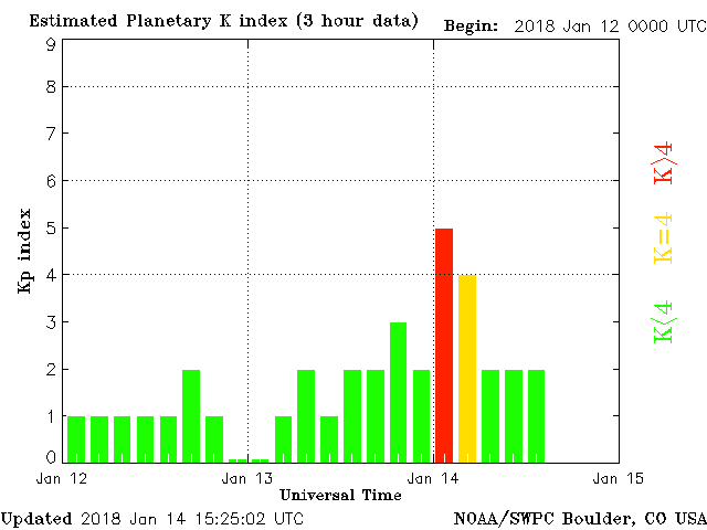 Geomagnetic conditions are stabilizing, presently resting at 2 of the KP index, due to a short lived yet moderate intensity disturbance that took place early this morning. A new earth-facing coronal-hole stream will likely impact in the coming days.