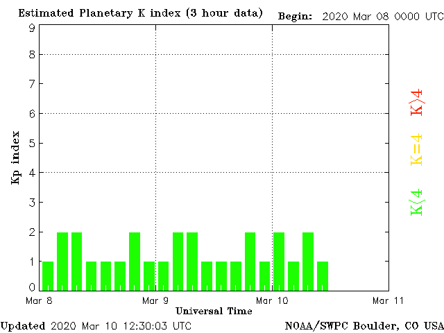 Geomagnetic activity is stable, ranging from 1 to 2 of the Kp Index. The solar wind intensity is calming. The solar wind will be calm over the next 4 days or so.