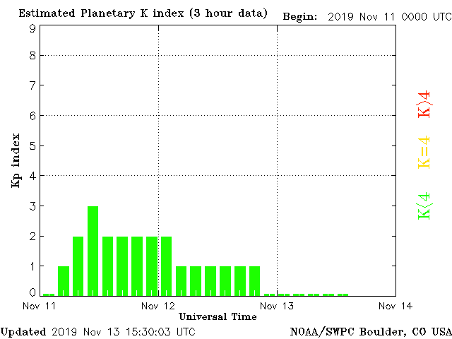 Geomagnetic activity is very stable, steady at 0 of the Kp Index. The solar wind is calm and the geomagnetic field has matched the stream, causing the extreme quiet unfolding now. The next earth-facing coronal-hole stream should impact the earth this weekend. Calm conditions until them.