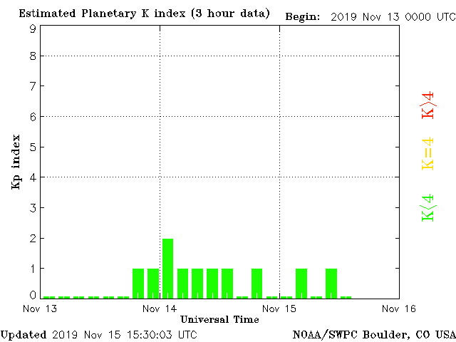 Geomagnetic activity is very stable, ranging from 1 to 2 of the Kp Index. The solar wind is calm. The expected coronal-hole stream is about to arrive, but will likely not produce major geomagnetic storms.