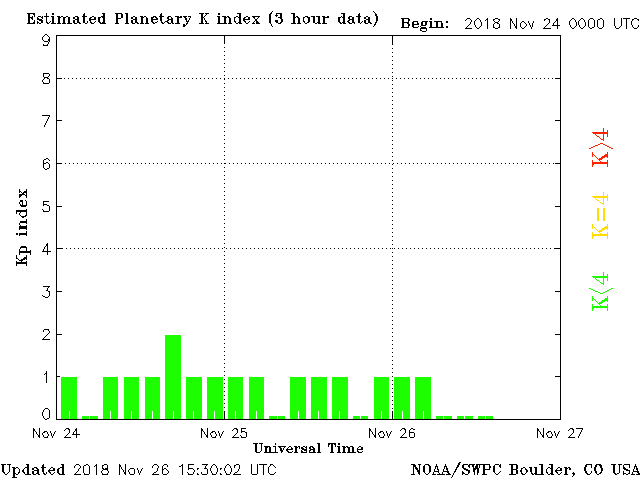 Geomagnetic activity is stabile, ranging from 0 to 1 of the Kp Index. Solar wind intensity is calm. The next earth-facing coronal hole is about to swing into earth-facing position, stream interaction expected in about 48 hours.