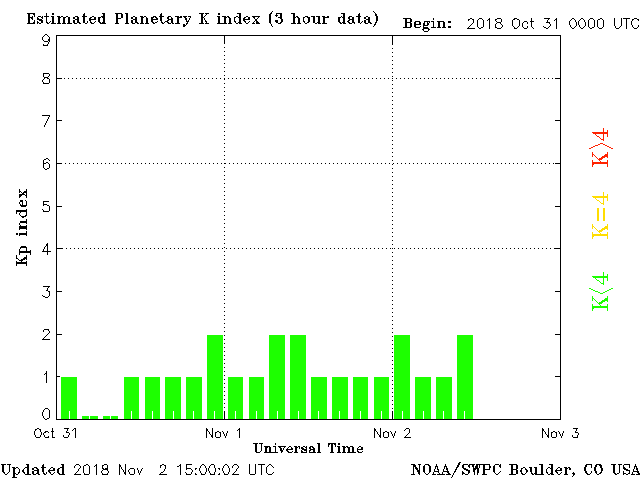 Geomagnetic activity is stable, ranging from 1 to 2 of the Kp Index. Yet again, the solar wind intensity spiked as expected due to the incoming coronal hole stream, causing a shift in the magnetic connection between earth and sun. The coronal hole stream from the current earth-facing region is expected to impact in 24 hours or so.