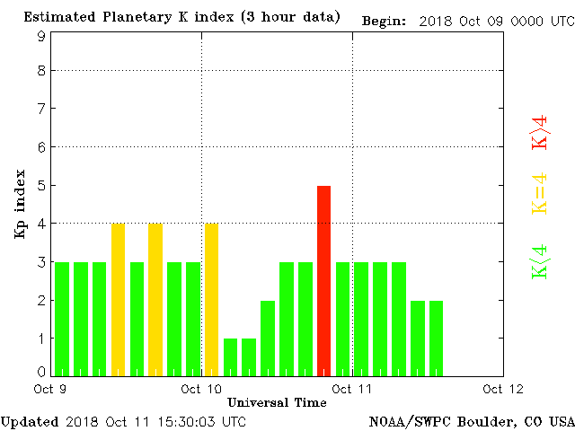 Geomagnetic activity is stabilizing, ranging from 2 to 3 of the Kp Index. The solar wind is calming. A minor uptick of geomagnetic activity occurred last night due to a phi angle shift in the geomagnetic field, causing an opening for plasma to flood in. The next earth-facing coronal hole stream is expected to impact in the next two days.