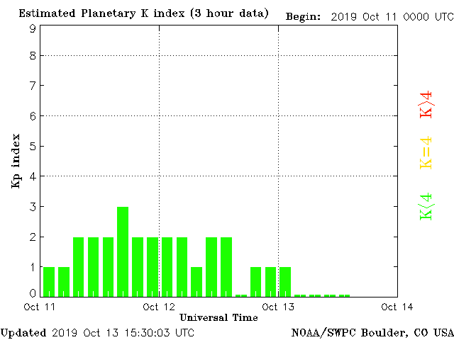 Geomagnetic activity is very stable, steady at 0 of the Kp Index. The speed and density of the solar wind is very calm. A coronal-hole stream will impact on the 14th, which could lead to geomagnetic upticks. Calm conditions likely till then.