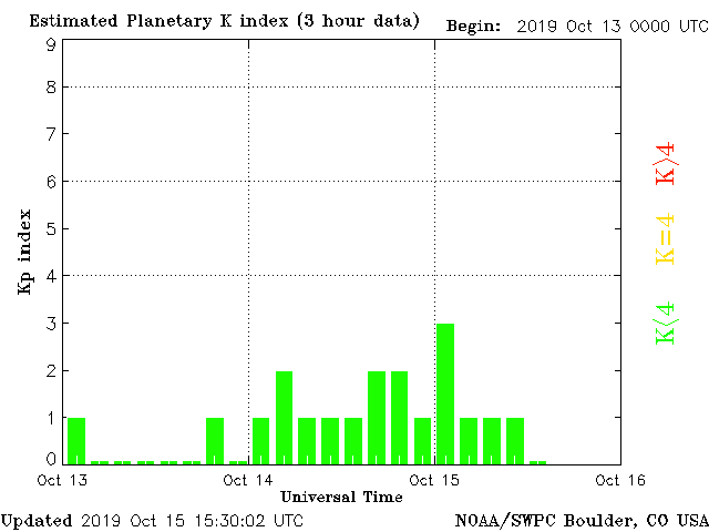 Geomagnetic activity is stable, ranging from 0 to 3 of the Kp Index. The speed and density of the solar wind is still calm. The coronal hole stream impact expected today has yet to arrive, and should impact later today or tomorrow. No major upticks expected from that event.