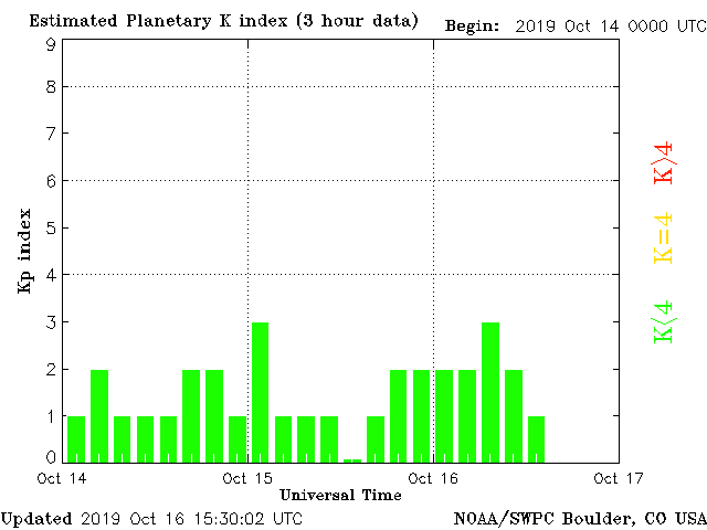 Geomagnetic activity is stable, ranging from 1 to 3 of the Kp Index. The speed and density of the solar wind is rising. However, the increase isn’t enough to trigger major geomagnetic upticks. The full impact of this solar wind event will likely unfold over the next day. Minor geomagnetic storms are possible for the next 24 to 48 hours.