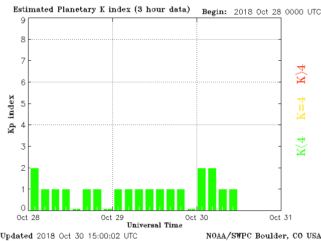 Geomagnetic activity is stable, ranging from 0 to 2 of the Kp Index. The solar wind intensity is within normal conditions, expected to uptick later today with the arrival of the coronal-hole stream. After this incoming stream, the next coronal-hole stream is expected to interact with the earth in several days.