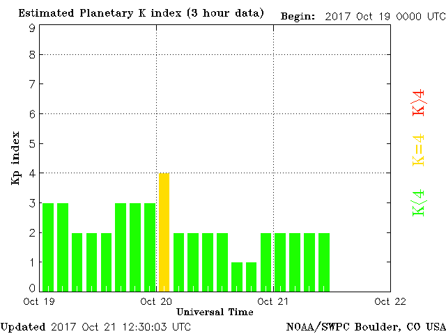 These conditions should persist for at least the next 12 hours, with a small chance of minor disruptions due to intensification of the coronal hole stream or solar wind.