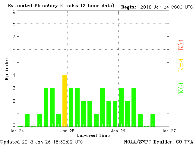 Geomagnetic reverberations took place this morning due to coronal-hole solar wind intensification that hit the geomagnetic field earlier than expected. The KP index is reflecting a range of 0 to 1 at the moment, with a possiblity of secondary upticks likely over the next 12 hours. The next earth-facing coronal-hole stream will not impact the earth for several days.