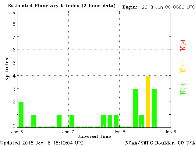 Report: The impact of individual and coordinated mass meditations will be MODERATE today. Geomagnetic conditions somewhat stormy, ranging from at 1 to 4 of the KP index. Solar wind intensity spiked this morning, which resulted in geomagnetic storms that could persist for the next 24 hour hours.