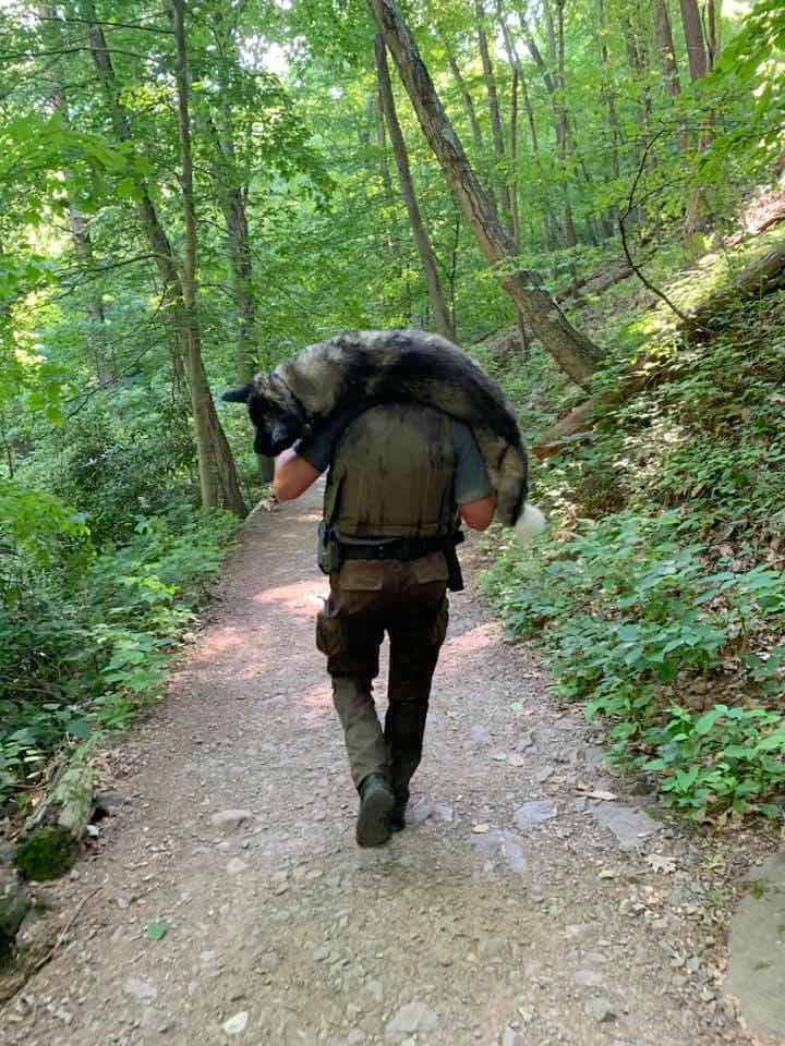 “The ranger then picked him back up over his shoulders and walked all the way back down to the street.”
