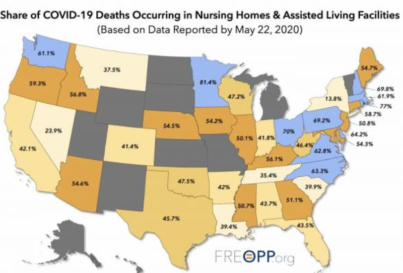 Only 0.6% of the US population lives in nursing homes but over 45% of the coronavirus deaths were in these centers.