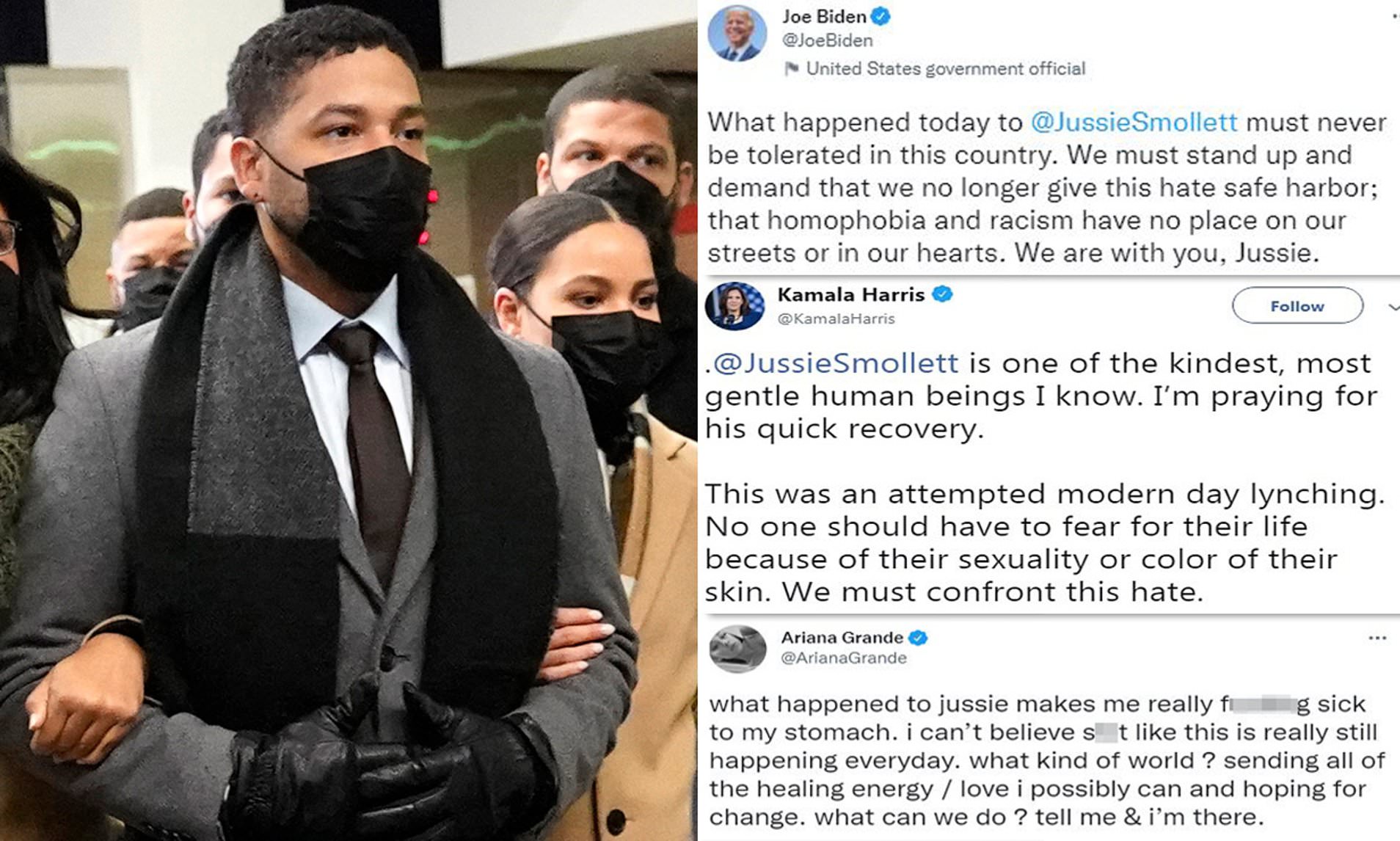 “We must stand up and demand that we no longer give this hate safe harbor; that homophobia and racism have no place on our streets or in our hearts. We are with you, Jussie.” Tweeted Biden.