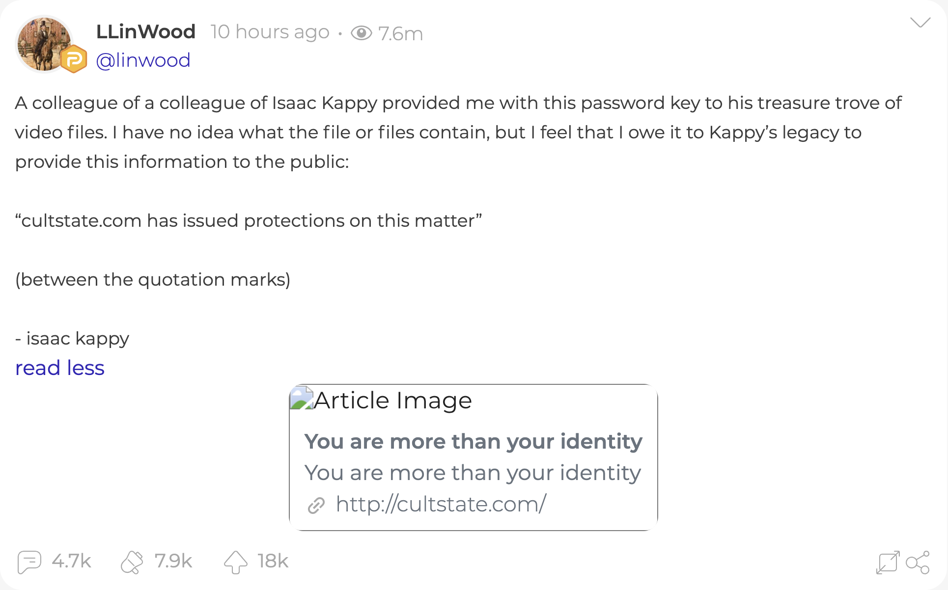 This article (Isaac Kappy Blackmail Files, Lin Wood has the Access Code But he Needs Your Help) originally appeared on StillnessintheStorm.com and is free and open source. You have permission to share or republish this article in full so long as attribution to the author and stillnessinthestorm.com are provided. If you spot a typo, email [email protected].