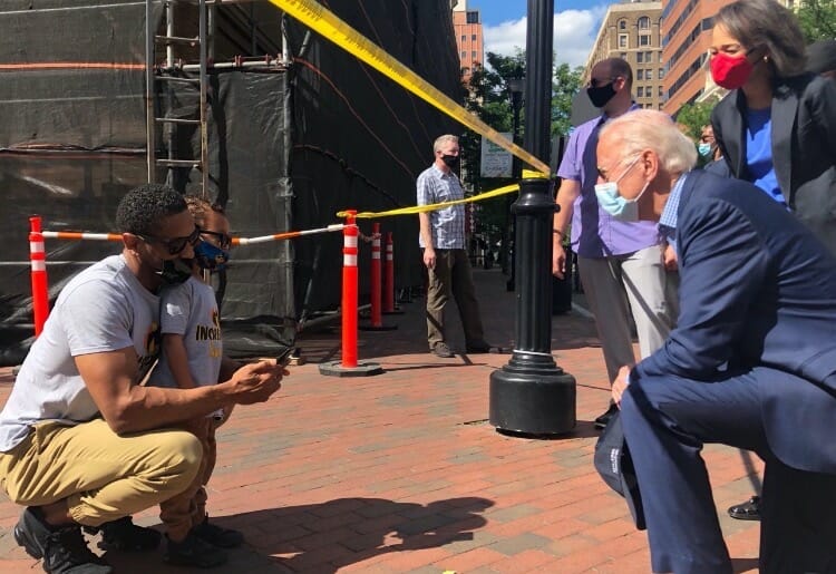Visiting the site of last night’s Wilmington protests, @JoeBiden gets some sage advice: