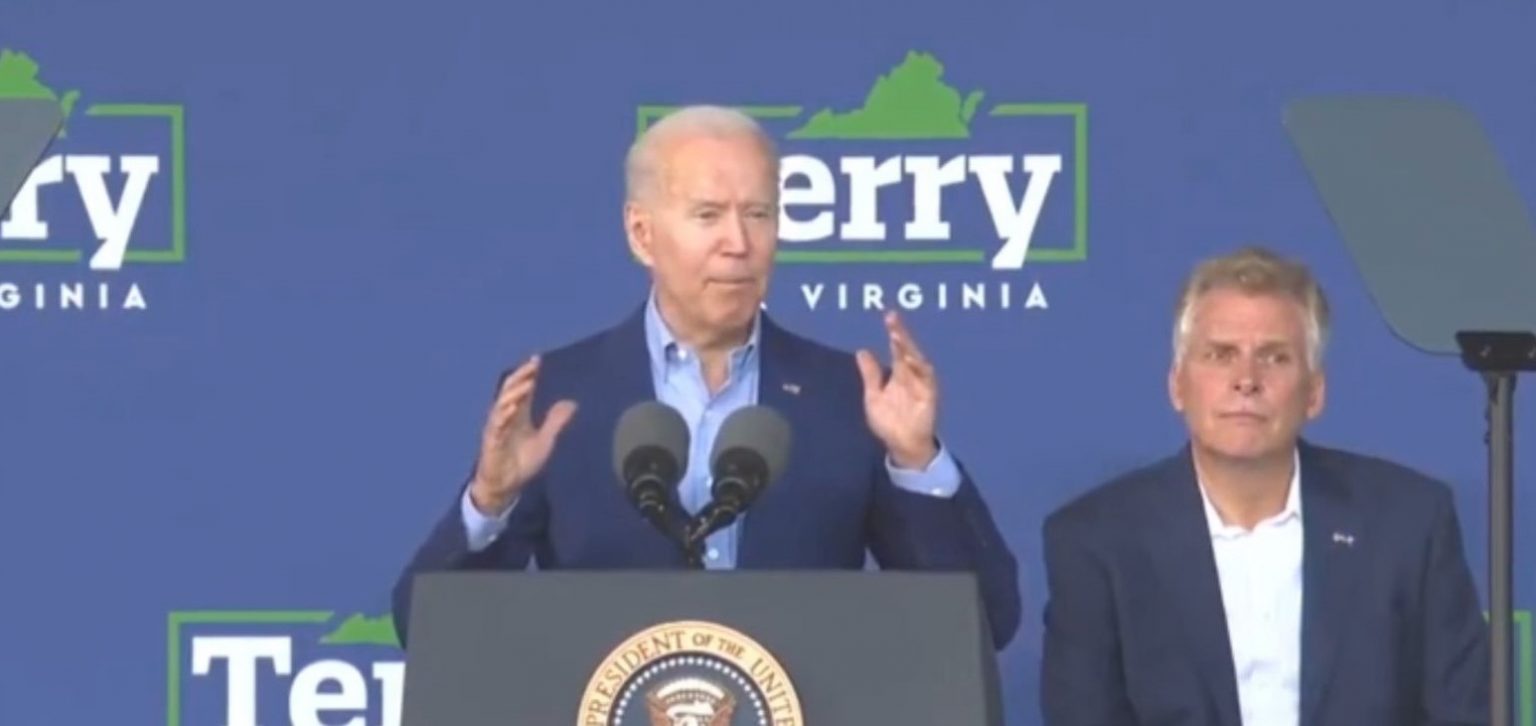 () Joe Biden was in the middle of a fundraiser for Terry McCauliffe, who is campaigning to be Virginia governor, when a heckler began shouting at the president.