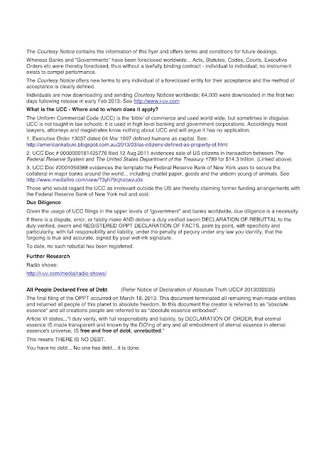 Now this is what needs to be issued consistently to all interested parties of the Iuv and OPPT movement. When you have fleshed out examples of what and how to complete the procedures on fighting banks and governments this is what we need. I only wish the freeman movement was this complete and accurate.
