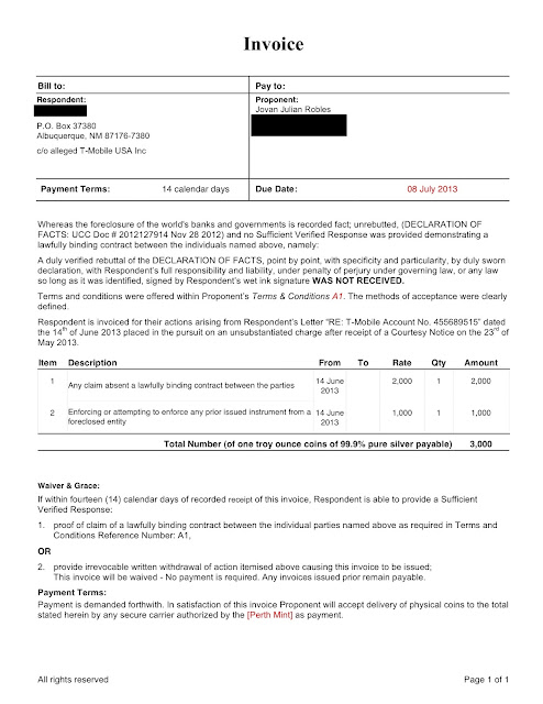 Since learning about the foreclosure on the worlds corporations including those masquerading as government, I began contesting the alleged debt that JOVAN J ROBLES “owed.” I began doing this in March 2013 and have had quite a few interactions. Some have resulted in the debt being retracted from collection agencies and others still are attempting to collect a debt from a previously foreclosed entity.
