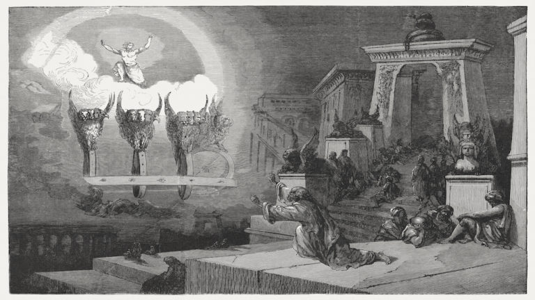 This is a common description of holy thrones of the Bible that includes four wheels next to angels. In the Book of Daniel, the prophet mentions that the throne of God has “wheels” (Daniel 7:9). The artwork of the ancient world reveals that there are thousands of pieces of art illustrating various elements that Ezekiel described of God’s throne-chariot.