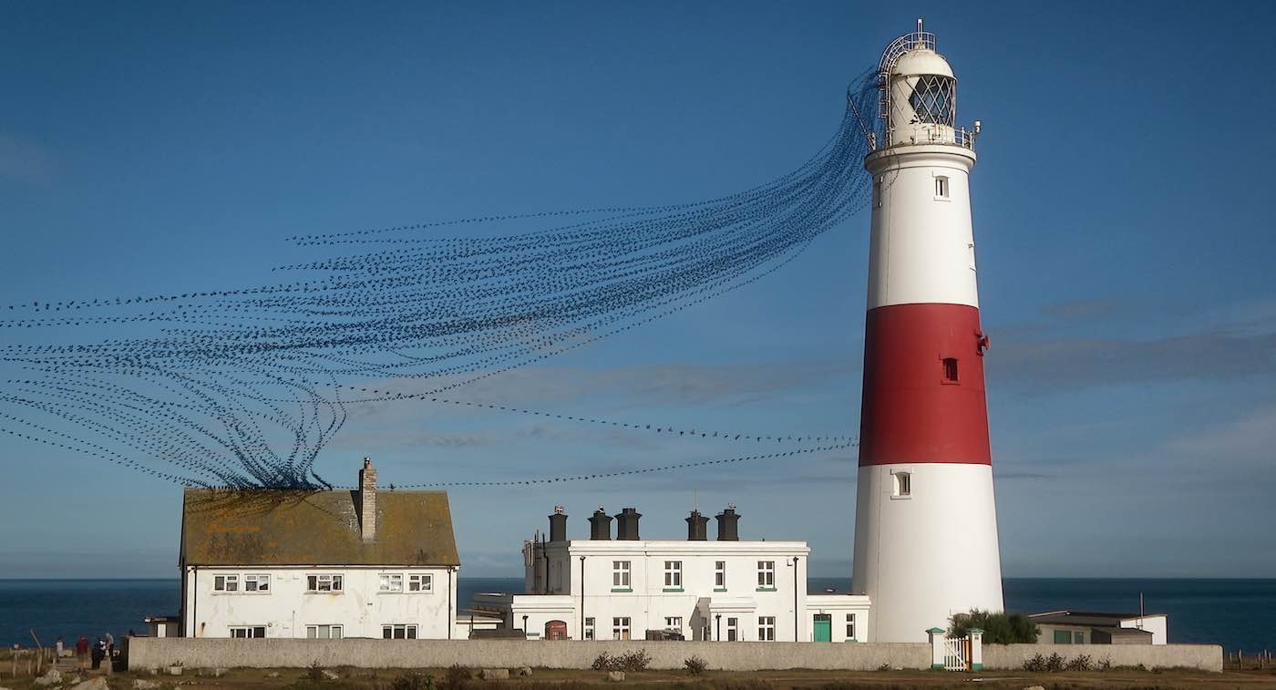 His pictures, which include the Portland Bill Lighthouse and the scenic the Jurassic Coast, show eye catching spiral shapes as the birds’ flight path is captured.