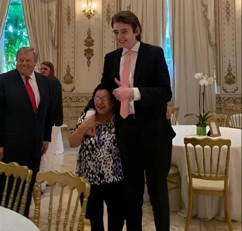One Twitter account with the handle @TheBarronTrump1 shared the photo on Sunday, and it showed Barron towering over another woman while wearing a suit and a pink tie. The photo had garnered over 29,000 likes as of Monday.