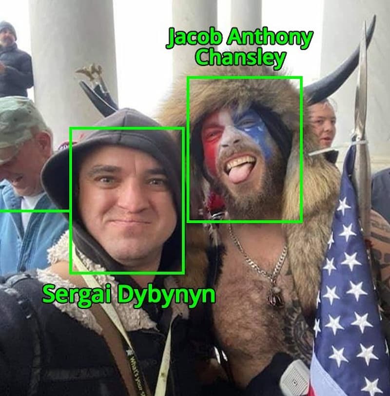 With the help of Yaacov Apelbaum, from the illustrated Primer, we know that Ukrainian Neo Nazis were at the Capitol on the 6th as well. One noted member of the fascist group who refers to itself as the Zhidobanderites, Sergai Dybynyn, was photographed at the Capitol with the man known as Jacob Anthony Chansley (see above). Sergai was also in the Ukrainian army and is wanted for horrible crimes in his past.