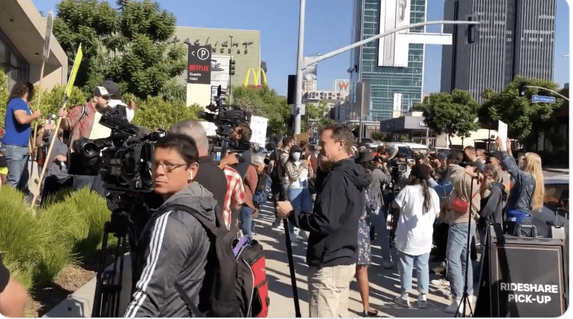 Netflix workers are furious about Dave Chapelle's comedy special walk off the job. They are being drowned by counter-protesters chanting of “Jokes are funny” pic.twitter.com/TFLloaqpHG