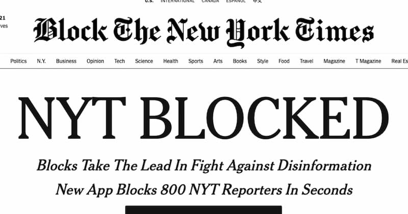 The BlockNYT allows users to block more than 800 employees of the New York Times on Twitter. The blocklist can be applied with a few clicks and is available for free at blocknyt.com.