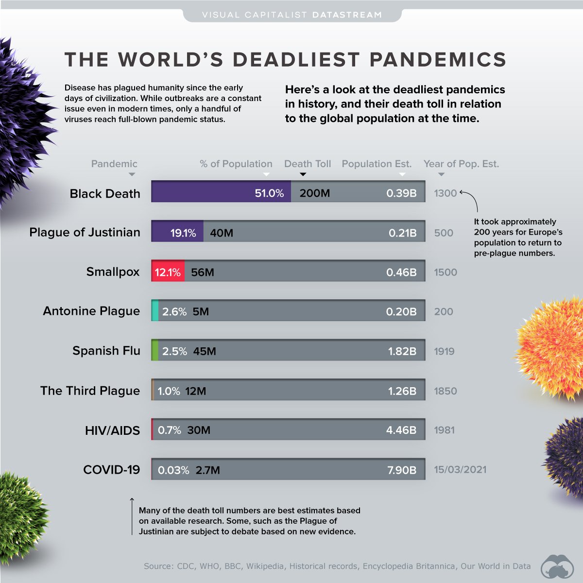 The Visual Capitalist also put together a visual last year on the history of pandemics.