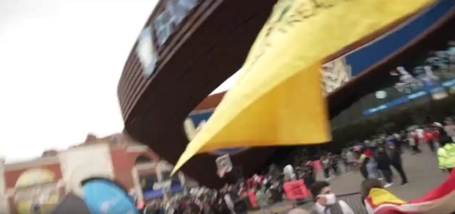 On Sunday, protesters crashed through the barricades at the Barclays Center in Brooklyn, New York bearing an American flag and shouting anti-vaccine mandate slogans like “no more mandates!” and urging the NBA to “let Kyrie play.” Watch the explosive moment: