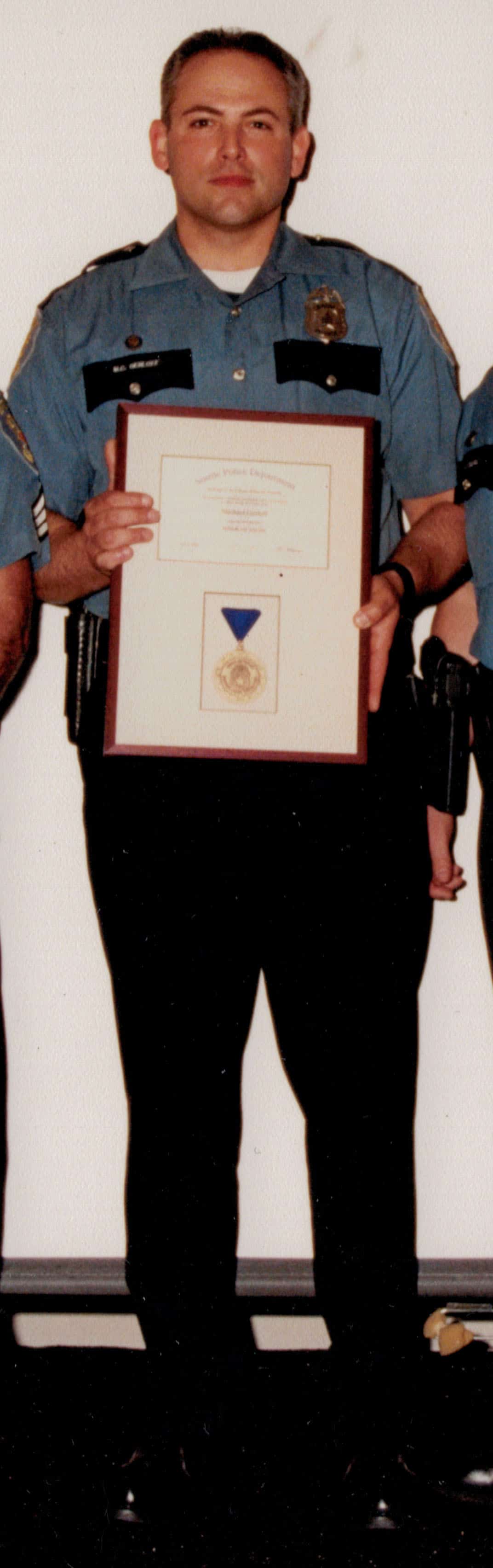 Michael Gerloff receiving Certificate of Valor with Seattle Police Department