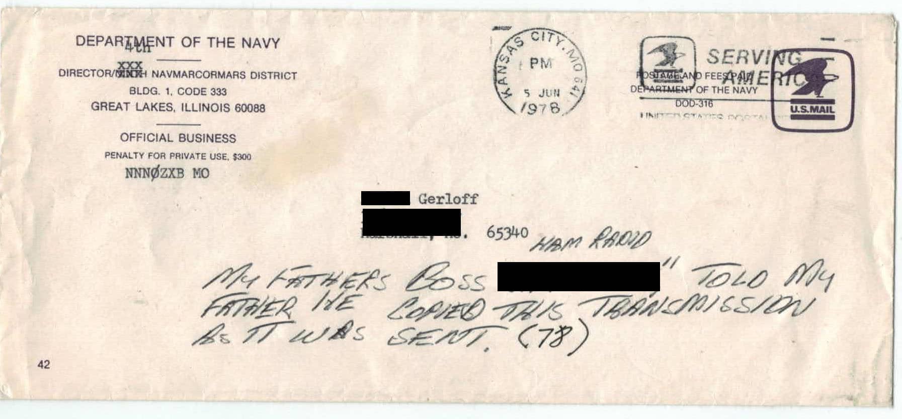 Envelope for Marsgram – personal data blacked out