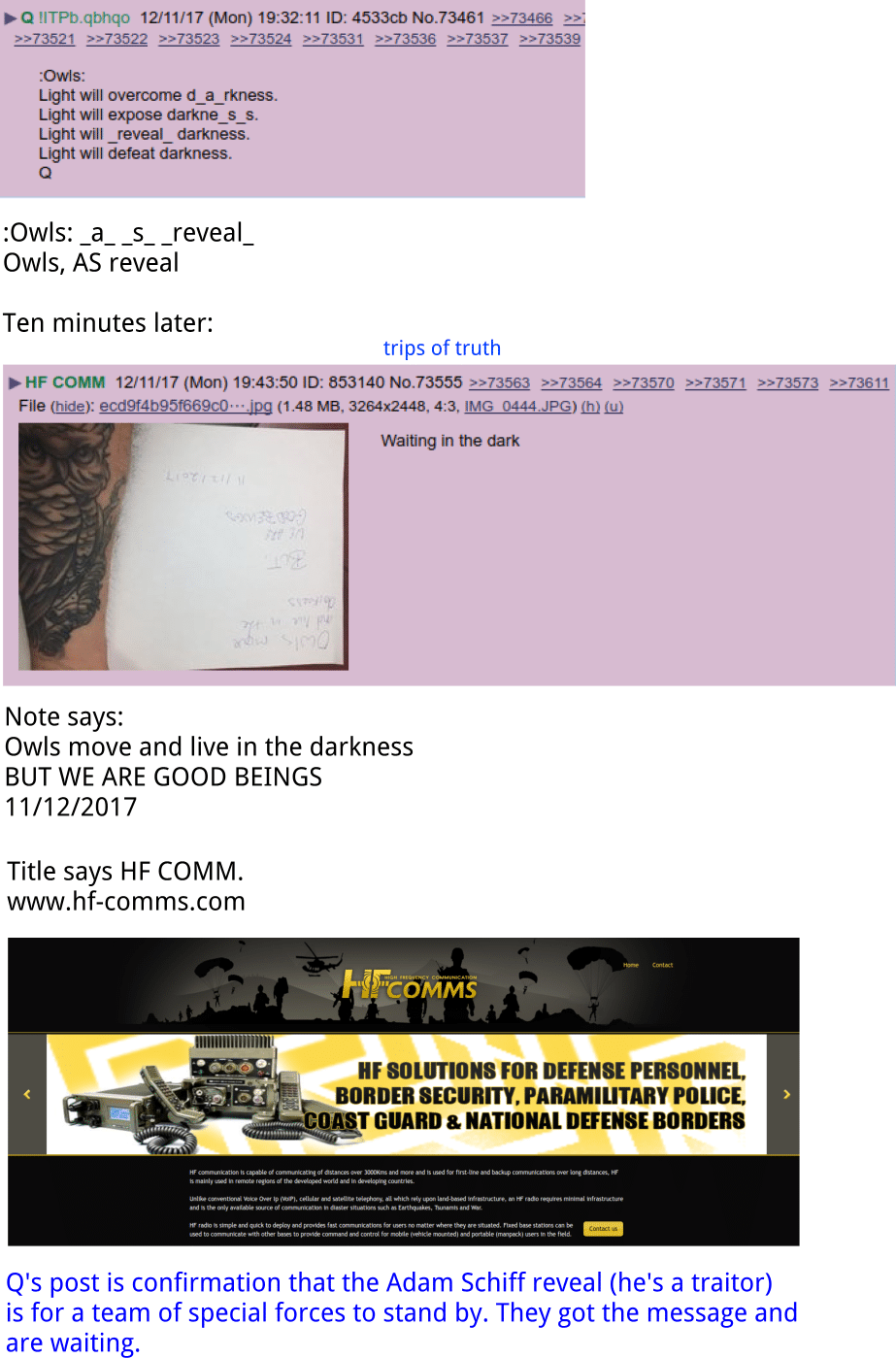 As well as leaking hints as to what’s going on behind the scenes, Q is also pasting coded instructions to the teams of watching operators. They may be copies of instructions sent over other secure channels, or they may be the real live instructions themselves. We think that at least once, they were real instructions.