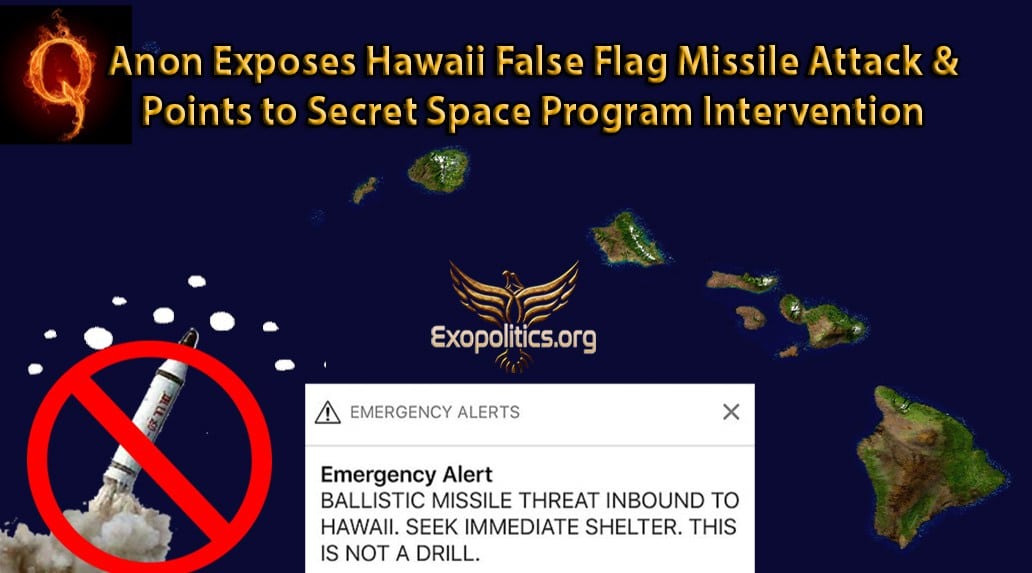 (Dr. Michael Salla) Today, QAnon returned to the topic of the January 13, 2018 ballistic missile alert for Hawaii being a false flag attack that was intended to bring about a major catastrophe for the Hawaiian islands. In once again raising the issue, QAnon emphasizes that supporters need to understand how the Deep State uses false flag events to promote its agenda, and how advanced technologies are being used by White Hats in the U.S. military to neutralize these threats.