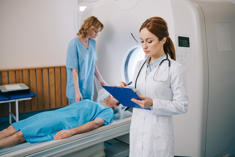 The scanner looks like a tube with a table that enables you to slide into the tunnel of the machine to gather data. Unlike CT scans or X-rays that use ionizing radiation known to damage DNA, the MRI uses magnetic fields.