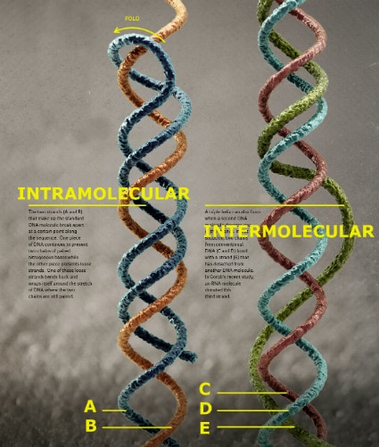 Humans and animals have a third helix with their normal two in cheek cells, some skin cells, and cells that heal rapidly. In amphibians and snakes, the third strand is present and results in severed limbs re-growing and operating normally.