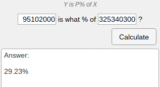 So, let’s now take the amount of folks who are not in the labor force and get the percentage of the population that this group accounts for. (I’ll use a calculator just so I know Obama never lied to me!)