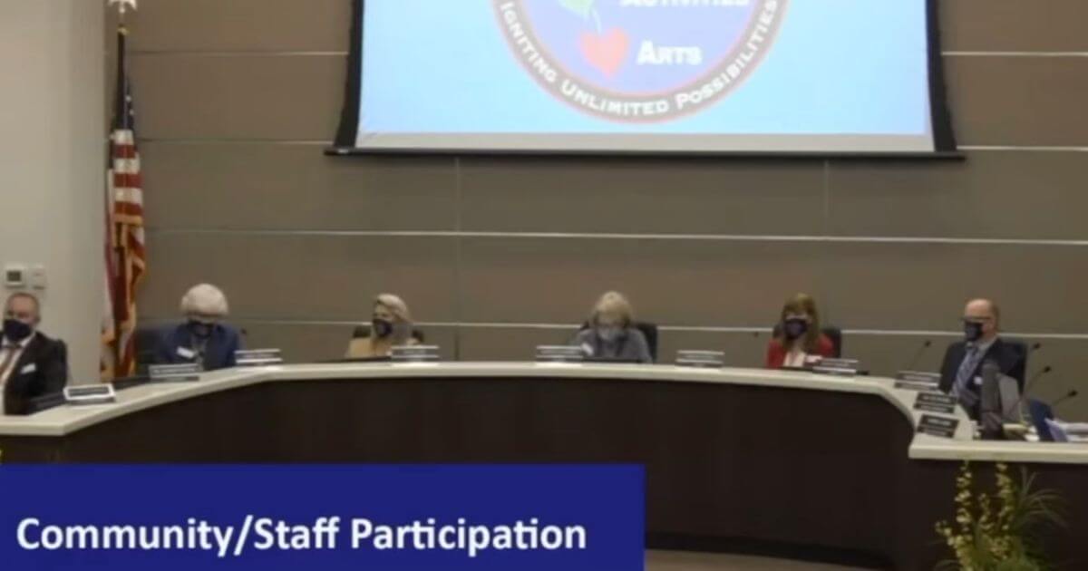 Marlys Davidson, the board president, and other members of the board listened to questions and statements from parents who expressed their opinions on issues ranging from mask mandates to critical race theory.