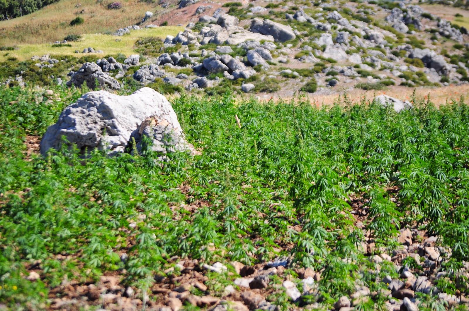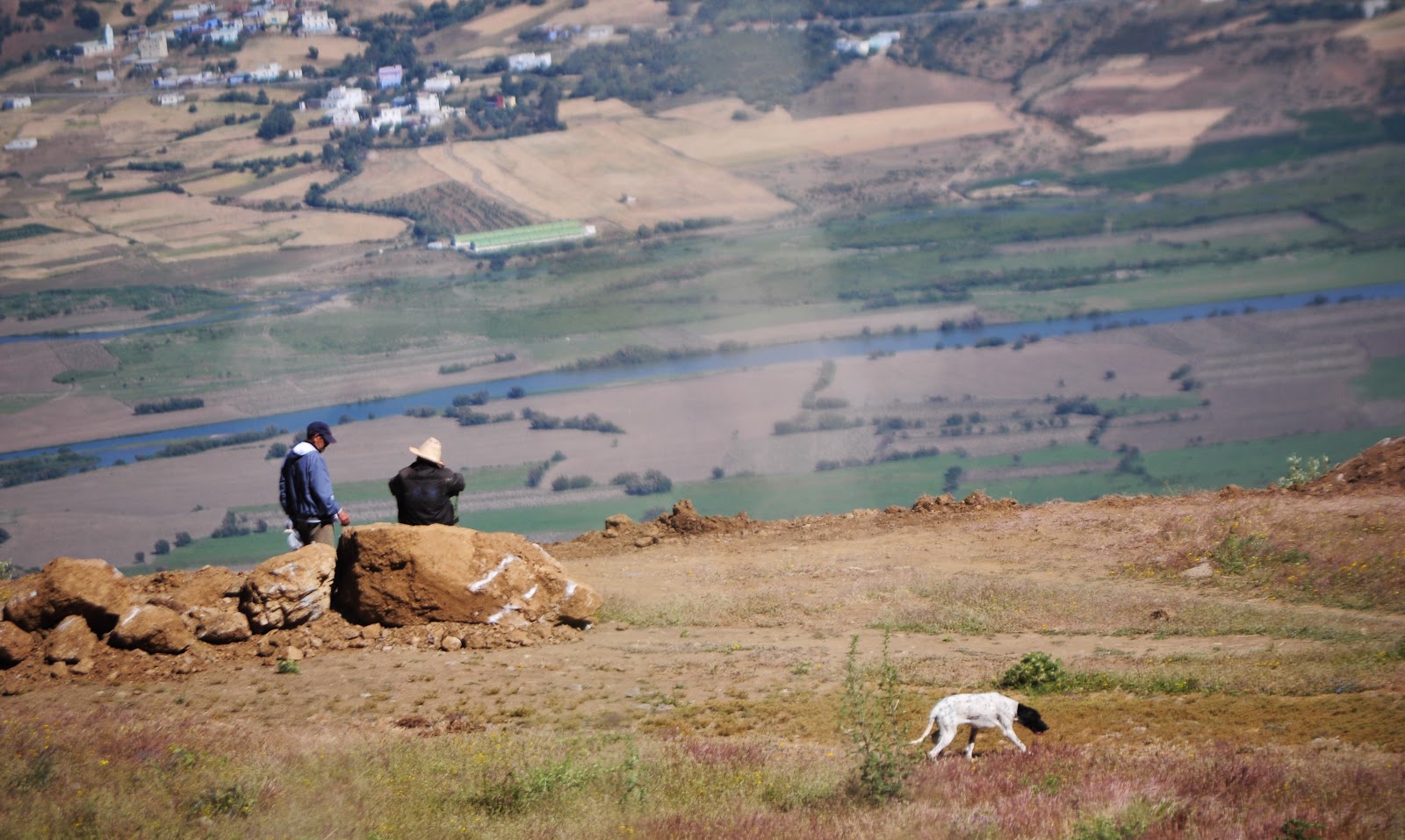 Because there was only one car, a group of us decided to start walking to the other location and Adeel was going to come back to pick us up after dropping the others off. The other plantation was about 7 kilometers away tucked inside a small valley about 250 meters below the summit. The valley is in between the horn mountains of Chefchaouen.