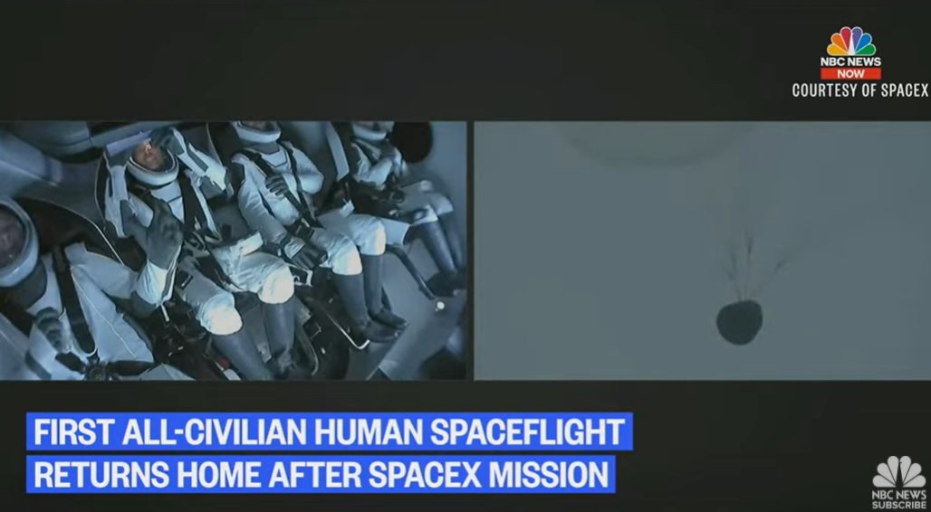 A SpaceX capsule carrying four space tourists aimed for a splashdown off the Florida coast Saturday evening.