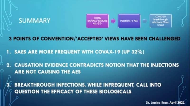 (Brian Shilhavy) America’s Frontline Doctors has published a video of a presentation by Dr. Jessica Rose, PhD, MSc, BSc, who has analyzed the data in the VAERS database related to the COVID shots. The presentation was for “Vaccine Choice Canada.”