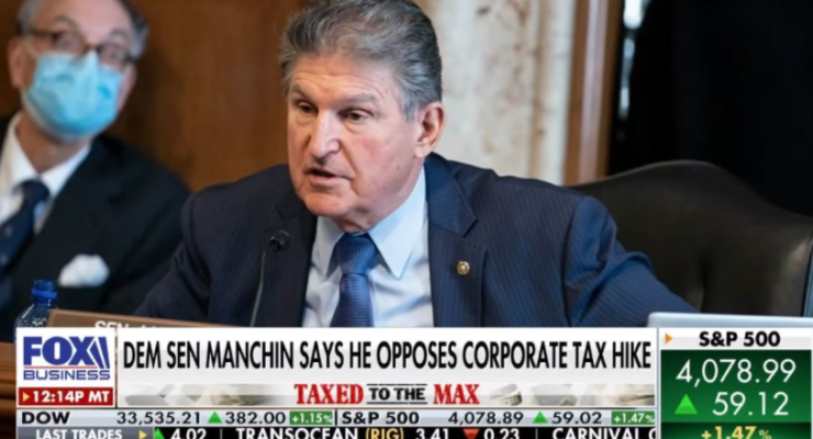 (Jim Hoft) Democratic Senator Joe Manchin said on Monday he rejects Joe Biden’s corporate tax increase to 28% and he may not be the only Democrat to break with the president on the enormous tax increase.