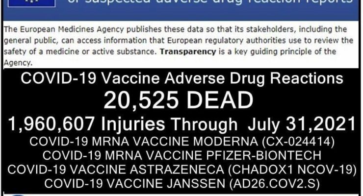 20,595 DEAD 1.9 Million Injured (50% SERIOUS) Reported in European Union’s Database of Adverse Drug Reactions for COVID-19 Shots