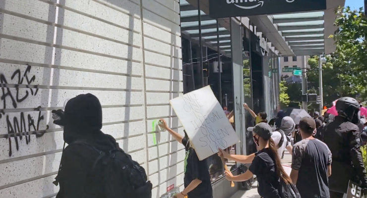 Antifa and Black Lives Matter Rioters Smash Amazon Store in Seattle, Attack TV News Crew and Police Precincts, Start Arson Fires