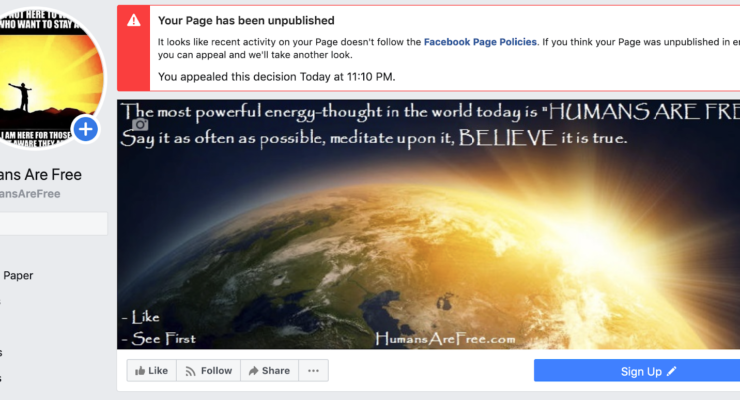 (Justin Deschamps) Censorship is affecting everyone. It affects the content creators and curators, who can’t share information they feel is important for the collective. It affects the seeker, who can’t access the information streams they need. And it affects the collective because we can’t create the best life possible through unity around the mutual truths of life. The following is an article by Humans Are Free, an alternative media outlet that has provided a great deal of research for inquiring minds, whose Facebook page was recently removed, presumably to censor their content. As a people, united in the quest for truth, we should work together to support the entire community, in this case, supporting one who’s passion for truth has been marginalized by the Deep State.